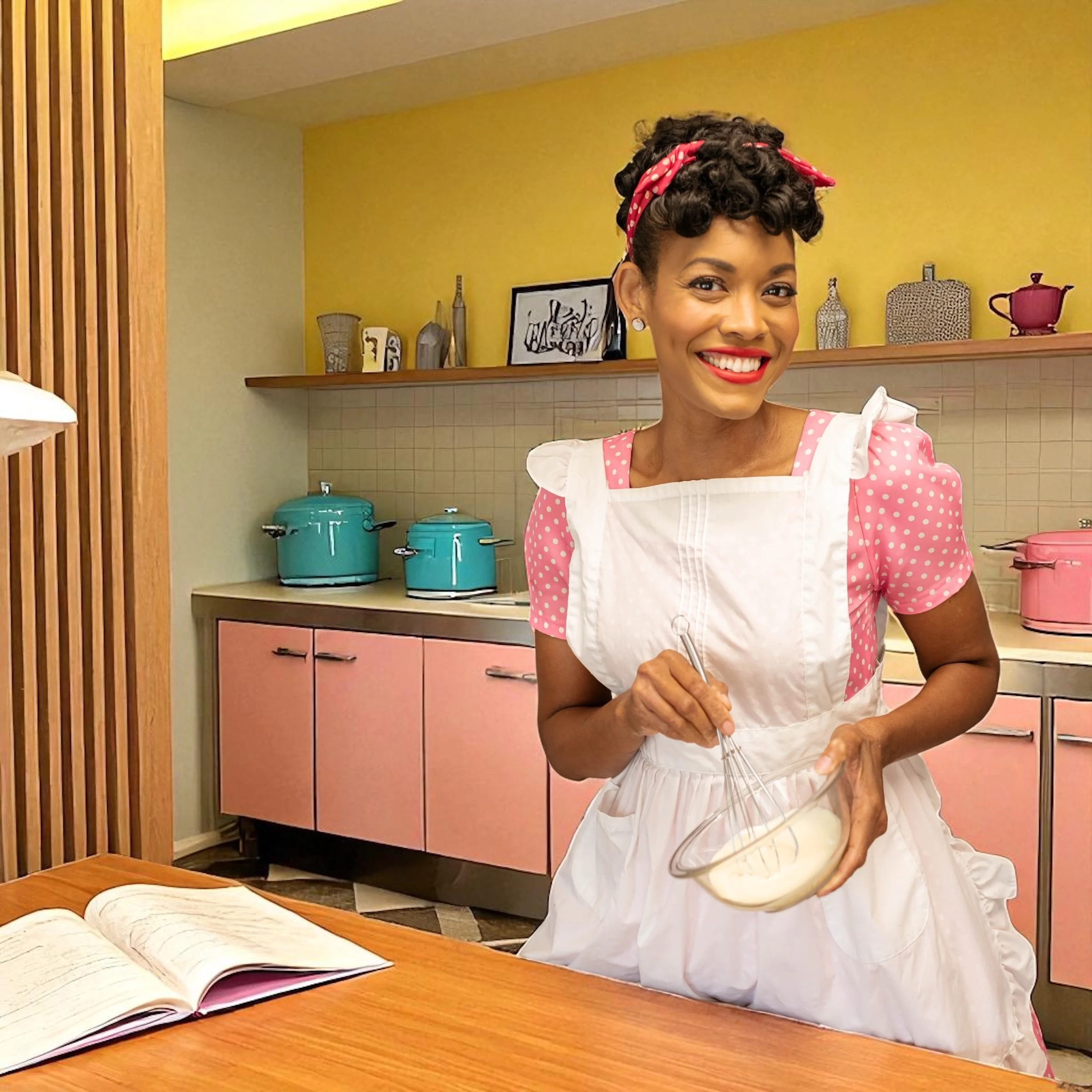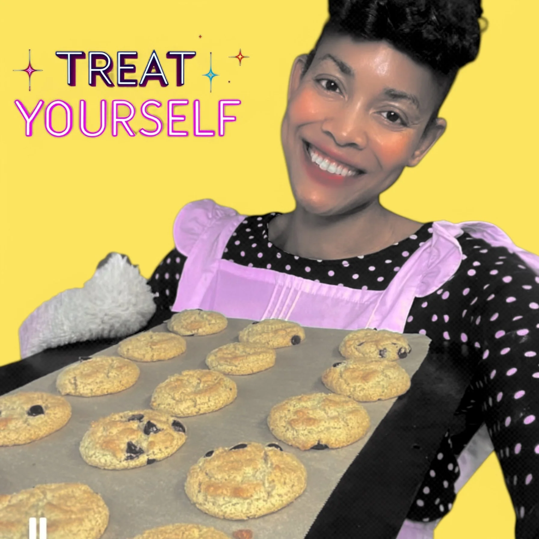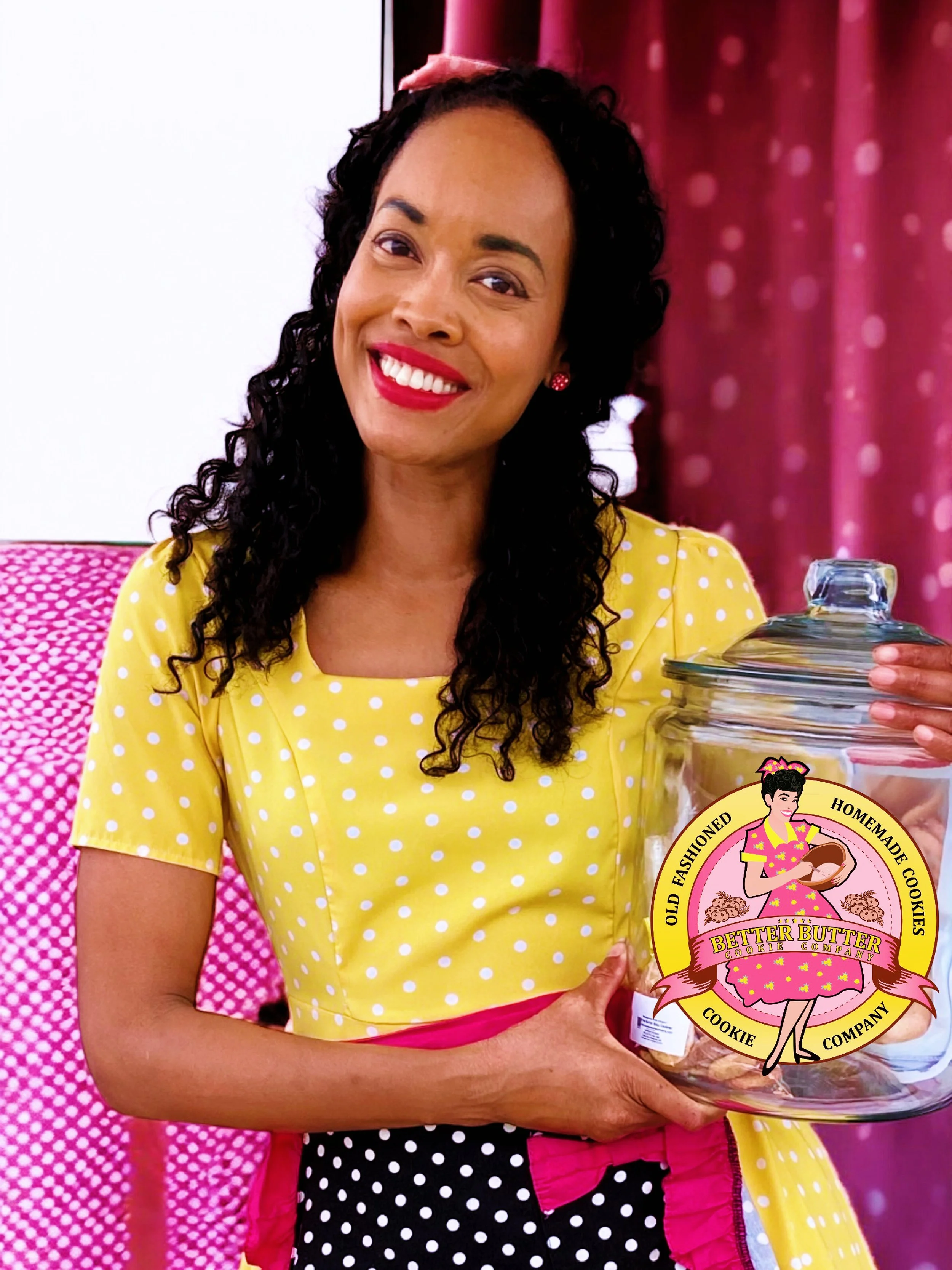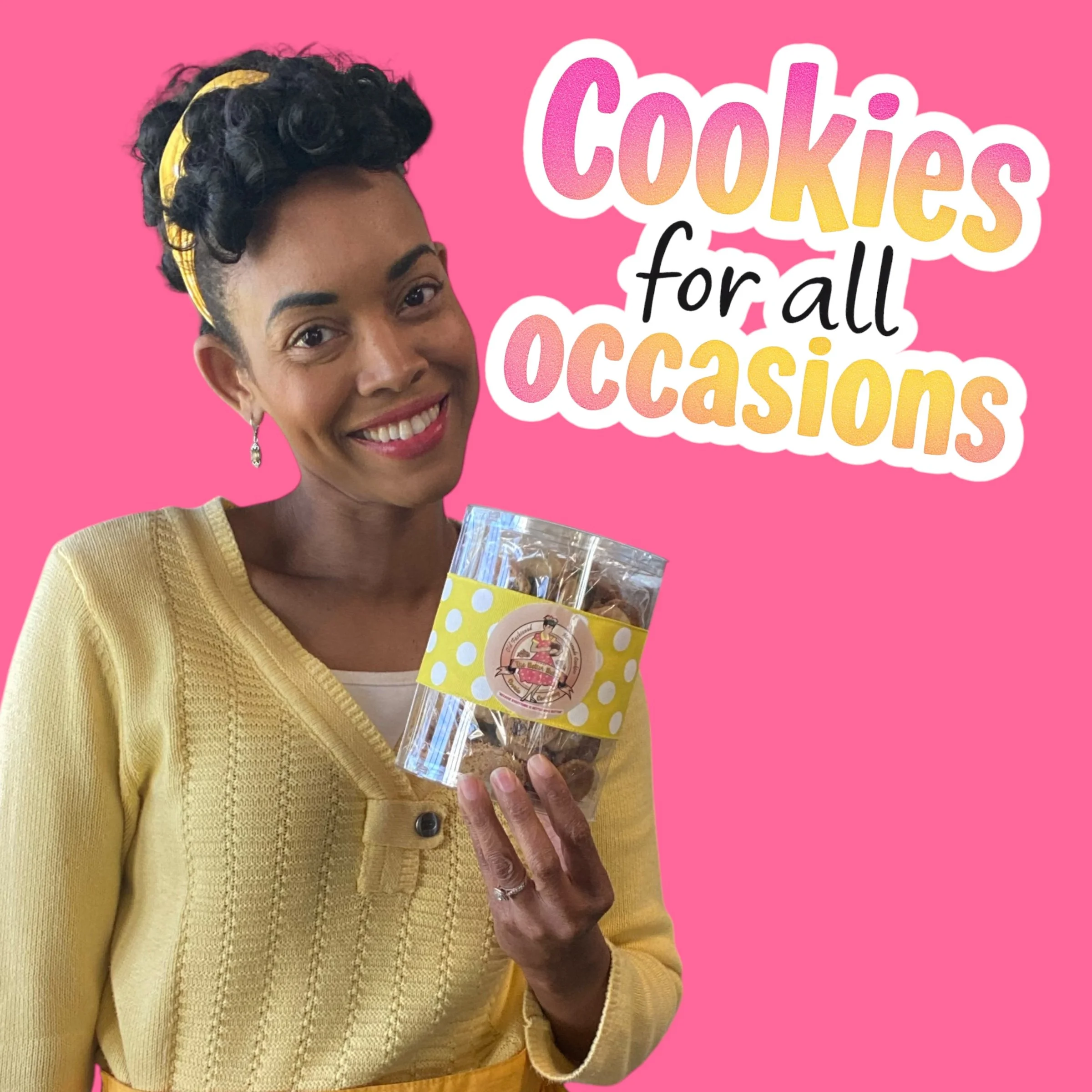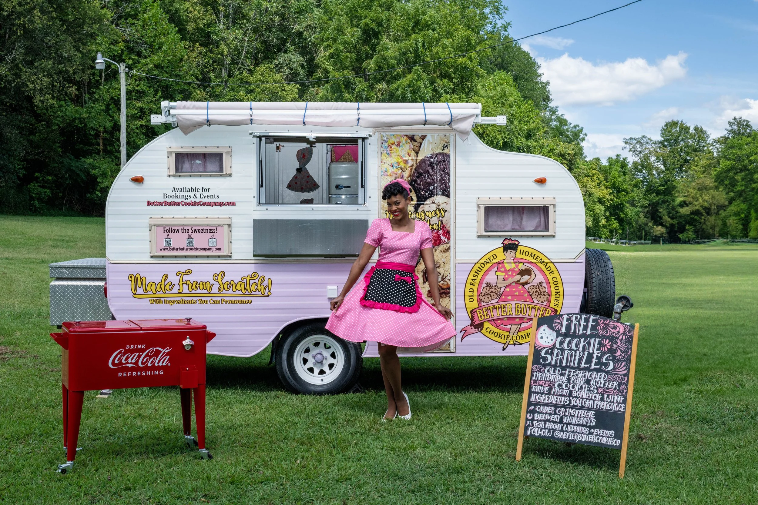 And the style? That’s just me having fun. I grew up on I Love Lucy, The Dick Van Dyke Show, Andy Griffith—those classic black-and-white laughs. So I leaned all the way in: 1950s housewife dresses, a vintage cookie camper, and cookies that taste like grandma’s. It’s nostalgia you can eat—a hug from the good ole days, wrapped in butter and sugar.